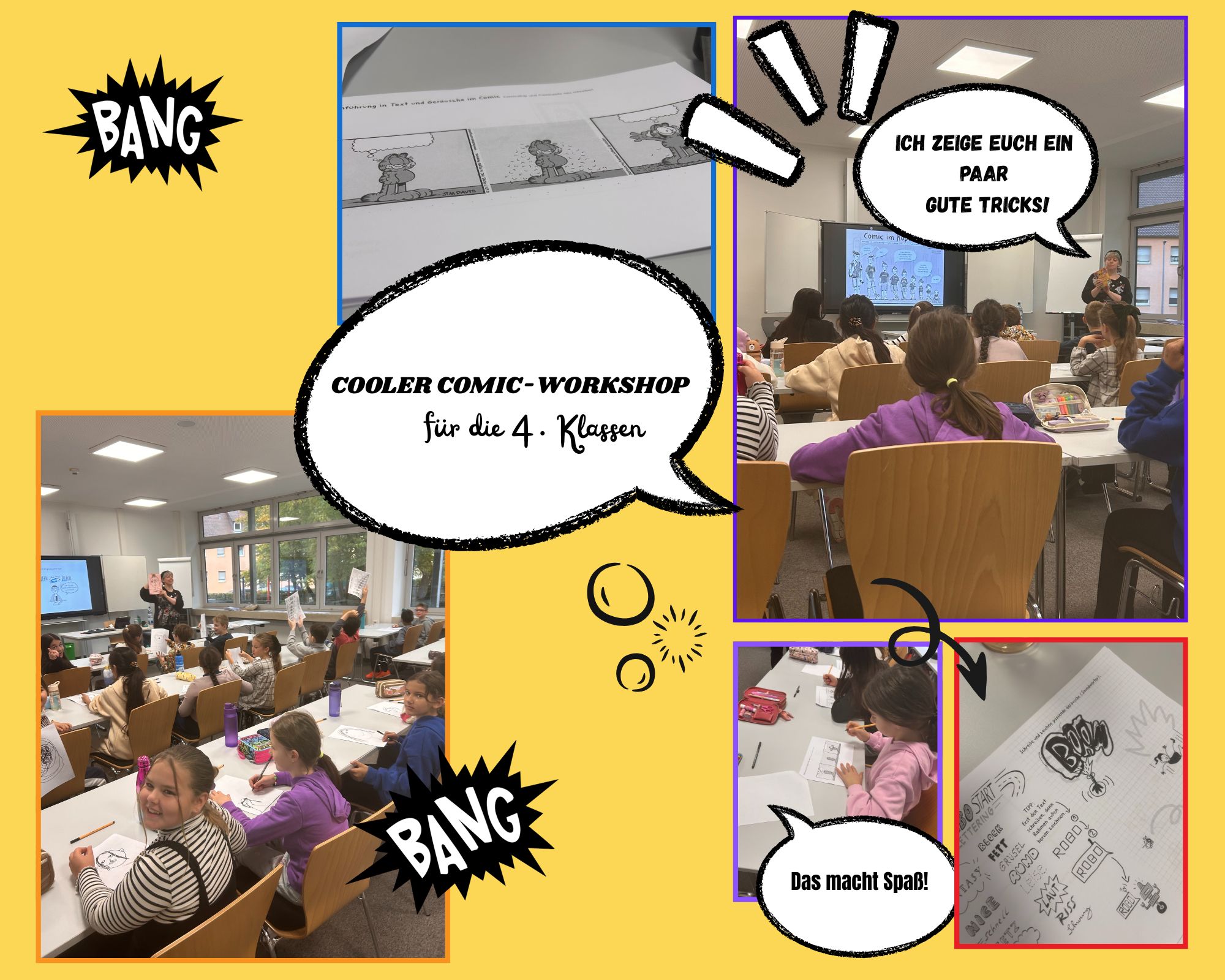 Die Kinder der 4. Klasse durften einen tollen Workshop zum Comic-Zeichnen mit der Illustratorin und Autorin Kathrin Rödl erleben. Dieses Angebot ermöglichte ihnen die Stadtbücherei Lauf. Vielen Dank an dieser Stelle. Nachdem die Kinder mit geschlossenen Augen ein Selbstporträt zeichnen durften, wurde ein bekannter Comic betrachtet und mit eigenen Worten befüllt. Anschließend bekamen die Kinder …